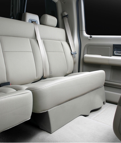 Vehicle specific ThunderForm enclosures are designed to utilize space in vehicles that would otherwise go unused to add a subwoofer enclosure. These enclosures are highly durable and provide a custom fit so that you do not have to sacrifice cargo space for added aftermarket performance. This model fits a single 12" subwoofer. Fits: Ford F-150 Supercrew 2004-2008, Ford F-150 Supercab 2004-2008